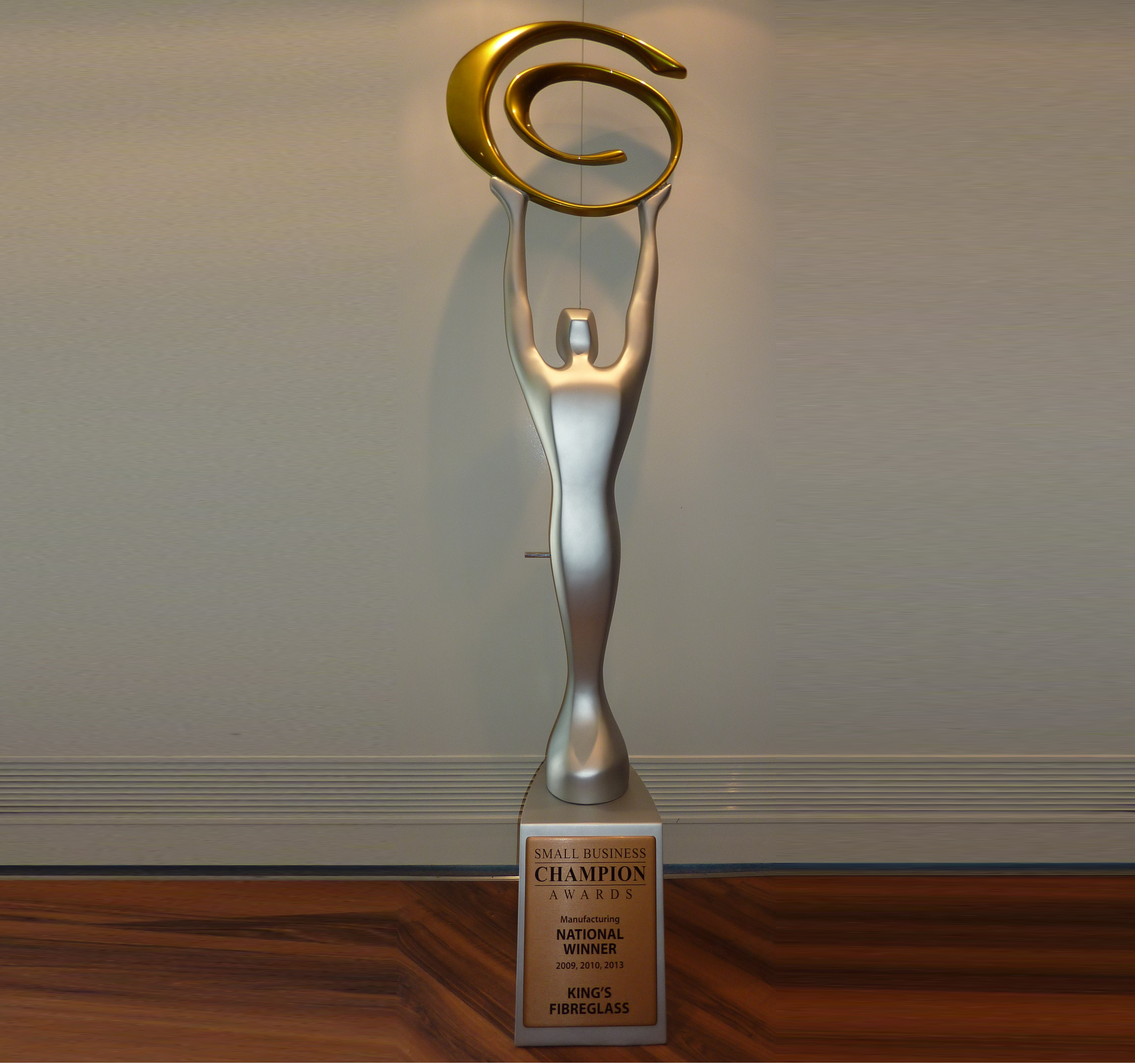 King’s Fibreglass have proudly been manufacturing replica trophies on behalf of companies for years. This replica trophy was made for the Small Business Champions Awards which we have been a recipient of for 6 times. Trophy is a replica which can be made with a custom name plate for the specific winner.