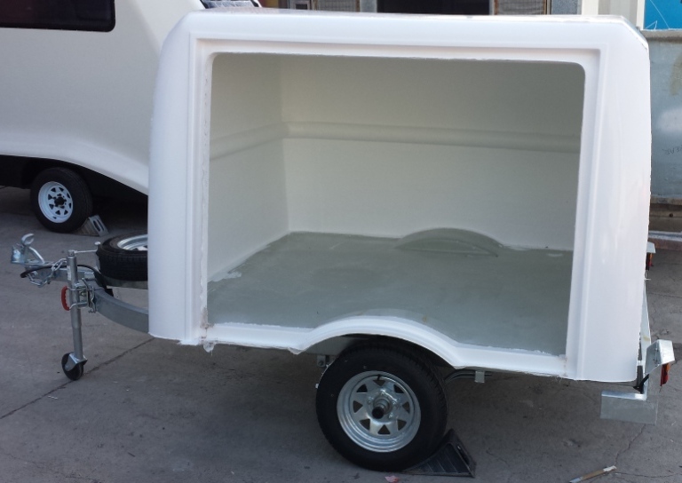 King’s Fibreglass is proud to unveil our new line of luggage trailers which come in a small and large version. These trailers come standard with with a galvanized chassis, jockey wheel, spare wheel and all required lights. The body of each unit comes standard in a white gelcoat finish with either a side or rear opening door with lockable t handles providing added security to your load. These line of trailers are sure to help improve your luggage transporting needs and are suited to many forms of transportation from cars to coaches due their rugged and sturdy design along with their incredibly light weight.